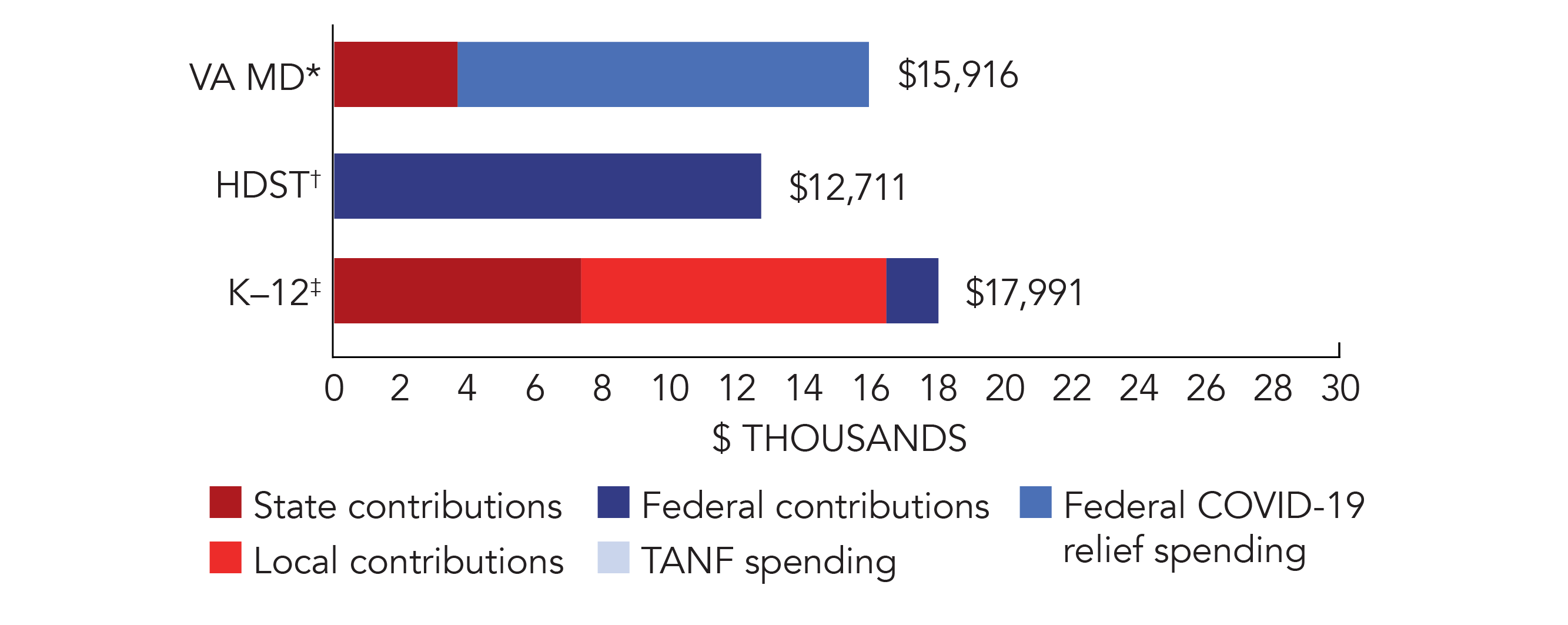 *Pre-K programs may receive additional funds from federal or local sources that are not included in this figure. †Head Start per-child spending includes funding only for 3- and 4-year-olds. ‡K–12 expenditures include capital spending as well as current operating expenditures.
