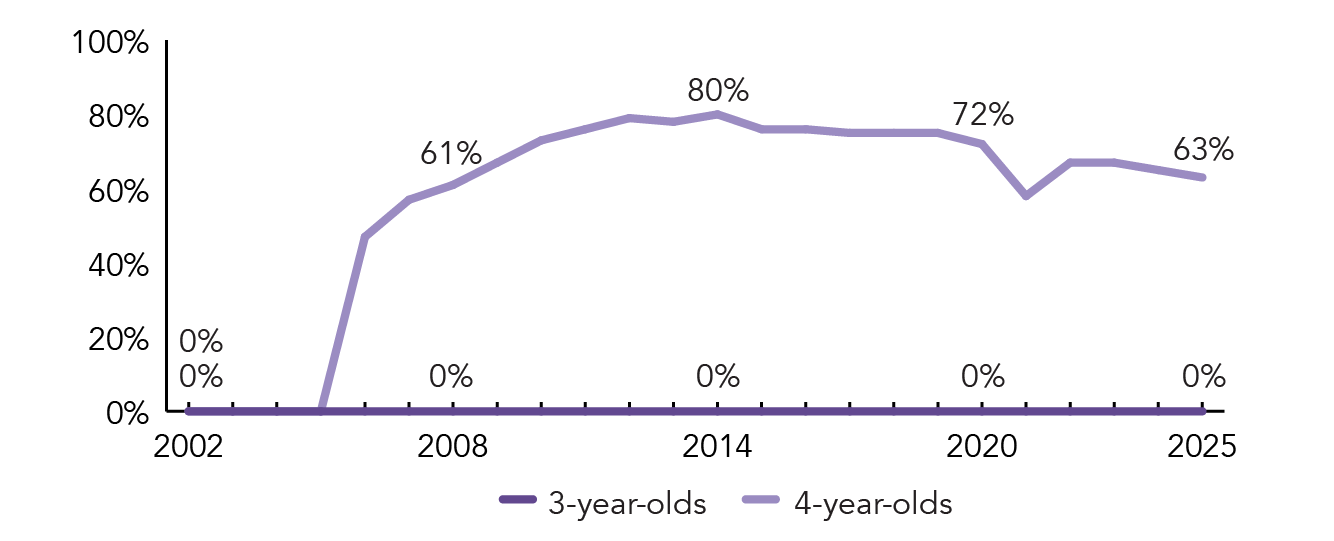 Florida’s School Readiness Program is a separate initiative, funded by CCDF, that offers financial assistance for childcare to eligible families. The School Readiness Plus (SRP) program was established in 2024 to provide support to families who exceed the School Readiness eligibility threshold. SRP allows families to continue to receive financial assistance for childcare services, promoting the economic stability of Florida families by providing a gradual progression off of social services. This report focuses solely on the VPK program.