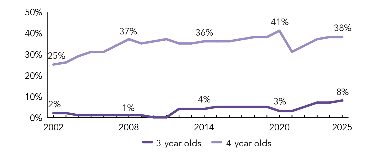 Maryland continued implementation of the Blueprint for Maryland’s Future, with the Maryland State Department of Education (MSDE) issuing ongoing guidance to support expansion and quality improvement, including a goal that at least 50% of new pre-K slots be delivered by private providers by 2028–29. The phase-out of federal COVID-relief funding increased pressure on local budgets that indirectly support pre-K expansion.