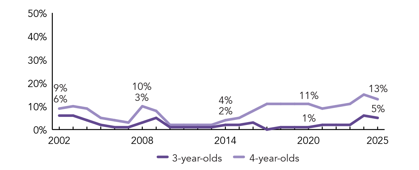 | Maximum Class Size Benchmark | 24 (3-year-olds); 28 (4-year-olds) | 20 or lower | |