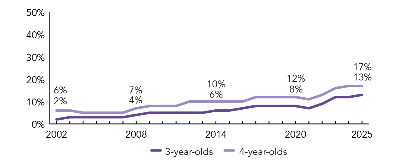 | Maximum Class Size Benchmark | 17 (3-year-olds); 20 (4-year-olds) | 20 or lower | |