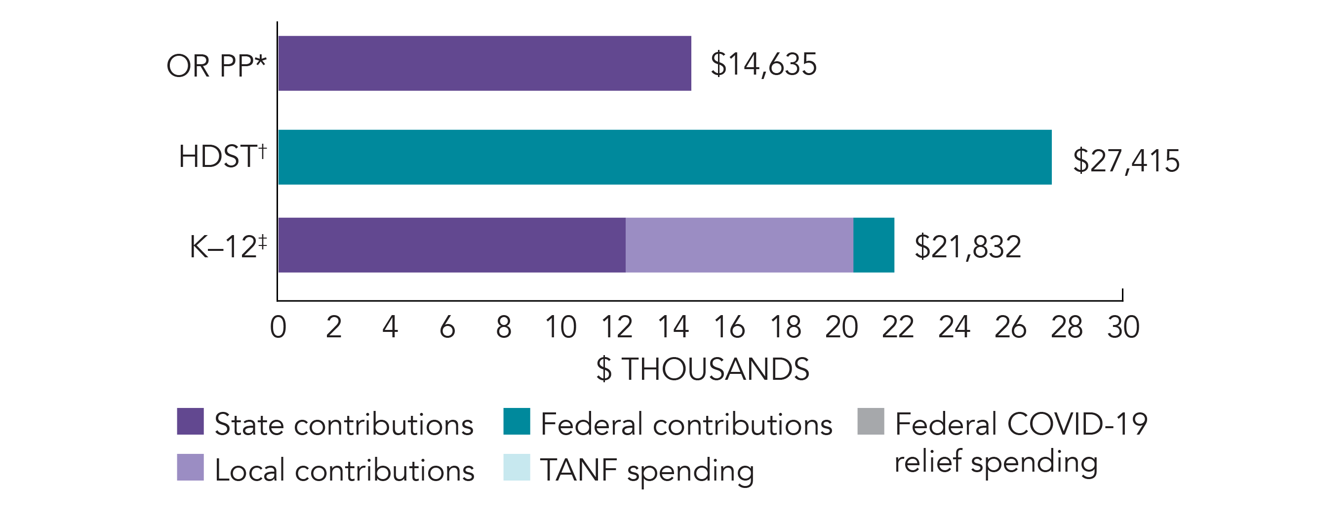 *Pre-K programs may receive additional funds from federal or local sources that are not included in this figure. †Head Start per-child spending includes funding only for 3- and 4-year-olds. ‡K–12 expenditures include capital spending as well as current operating expenditures.